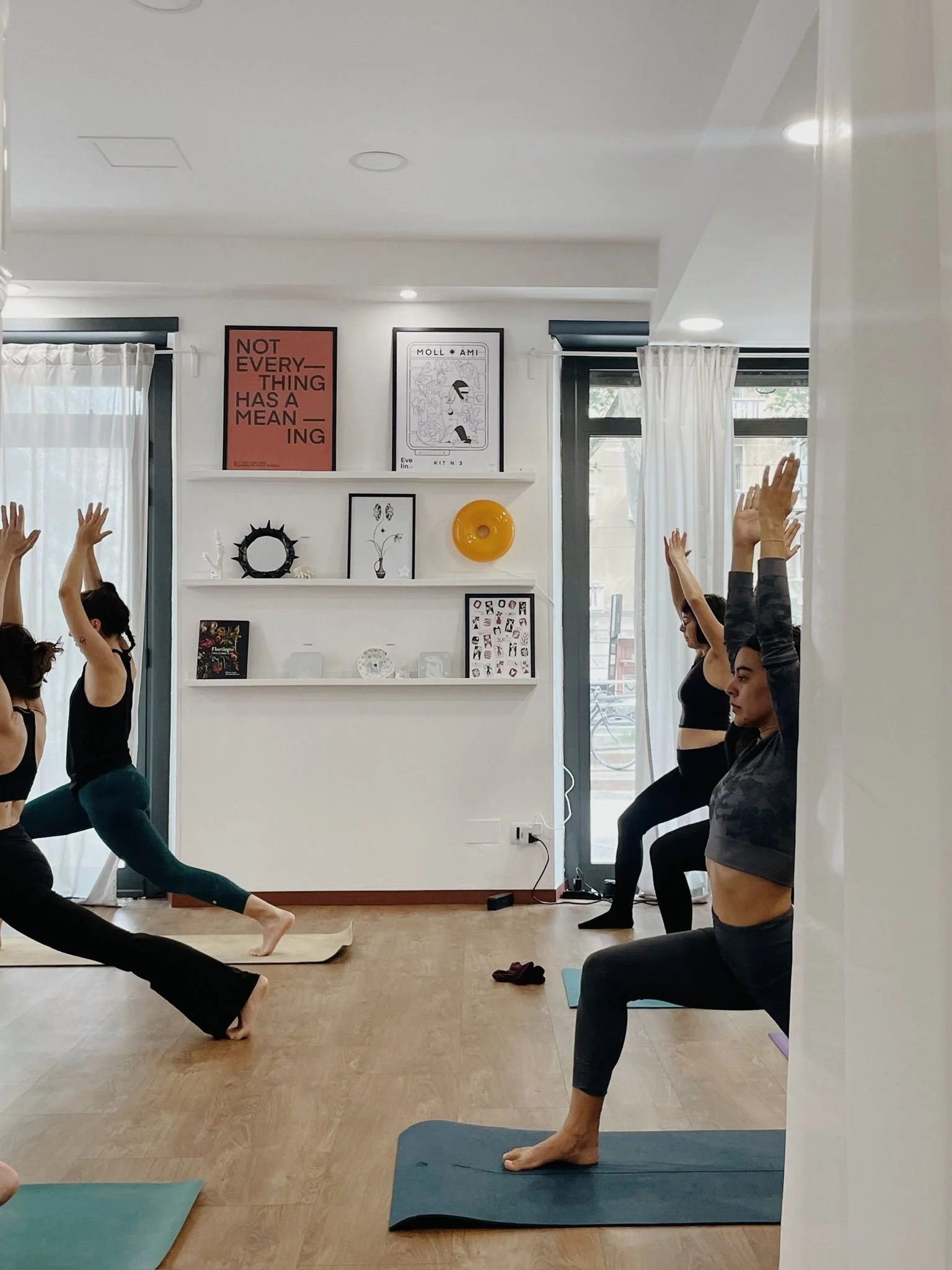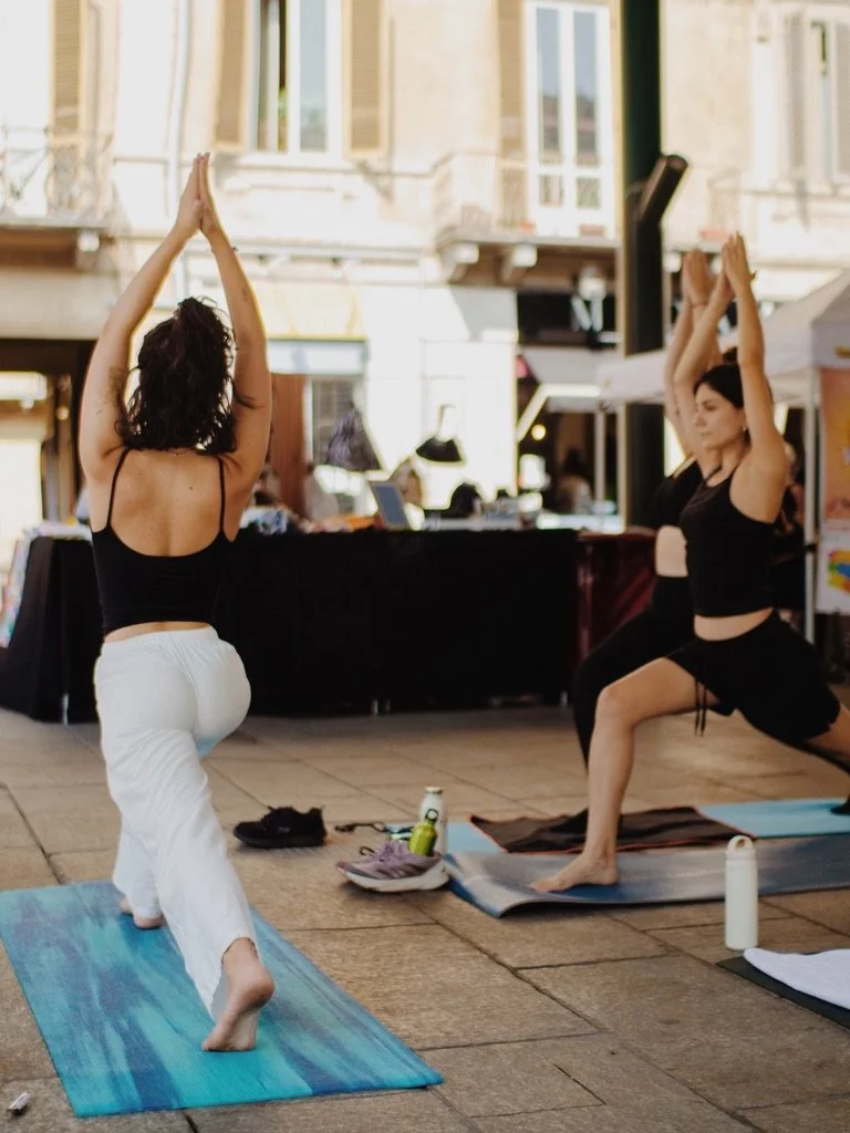 Lezioni di gruppo di Dynamic Vinyāsa ogni settimana in studio o al parco, guidate in ITA + ENG.